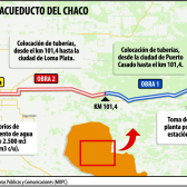 Sistema de Captación de agua cruda del Río Paraguay. Planta de tratamiento de agua. Estación principal de bombeo. Tubería de PRFV y RPVC (longitud: 202 km). Reservorios de agua en Puerto Casado y Loma Plata. Obras e instalaciones complementarias para operación y control del sistema