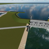 277 MW. 3 horizontal axis bulb turbines of 92 MW each. Mechanical, electromechanical and electrical equipment, protection systems, control, measurement, communication and computer control. Fish transfer system. Integration of the executive project on a 3D model - Building Information Modeling